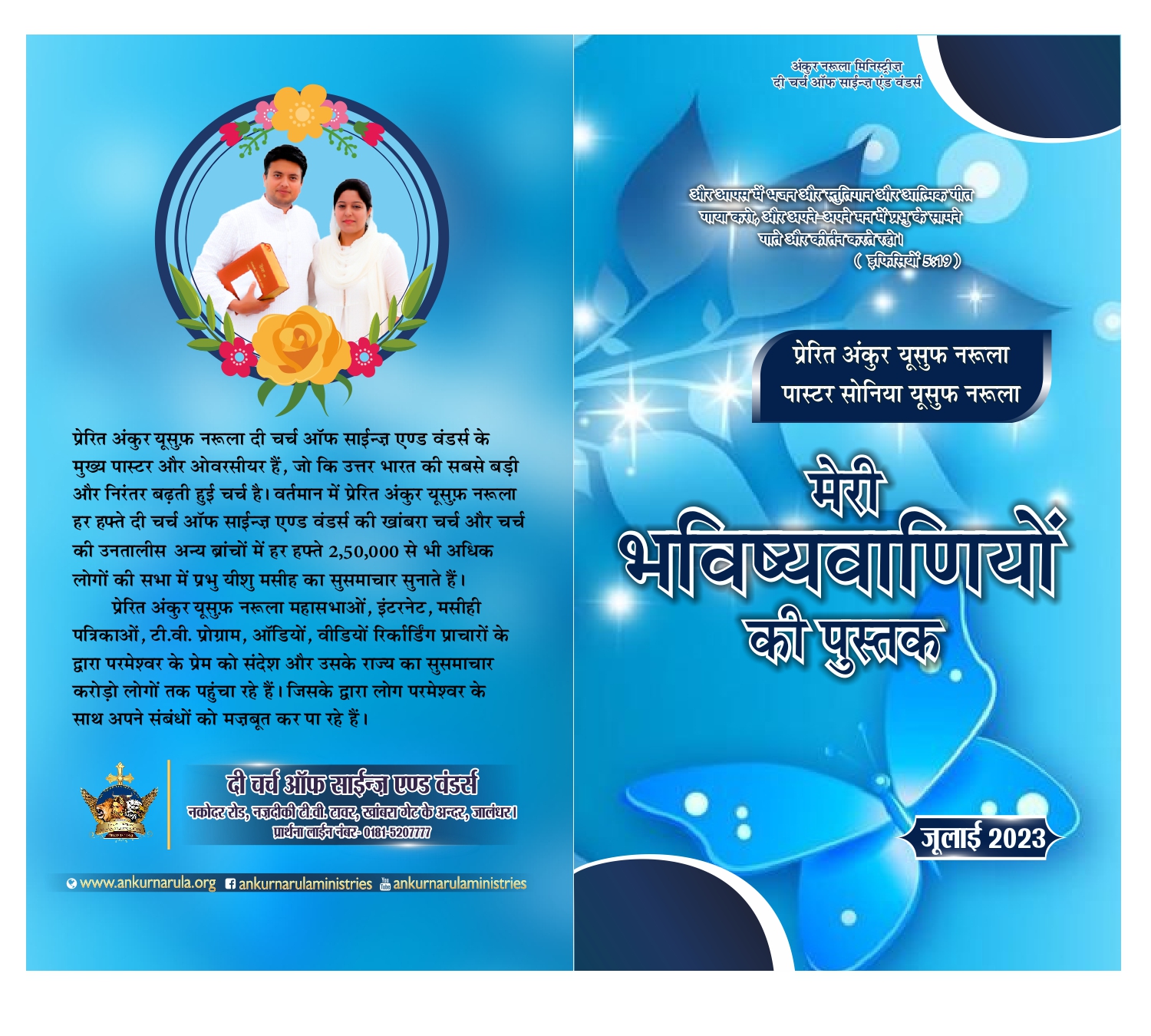 Ankur Narula Ministry is the largest and fastest-growing church ministry in Punjab, India. Apostle Ankur Yoseph Narula is the Senior Pastor and Overseer of The Church of Signs and Wonders.